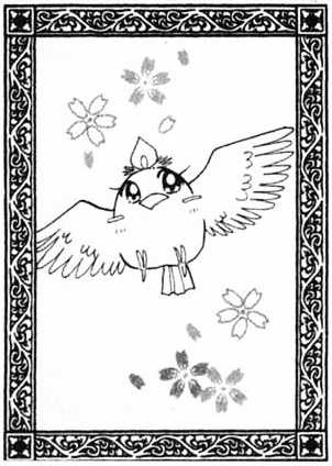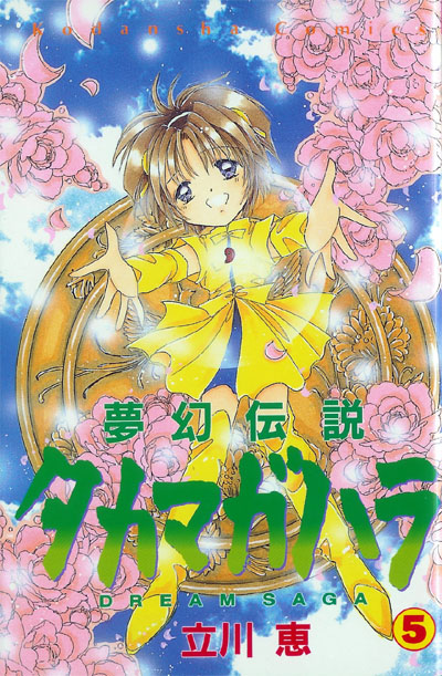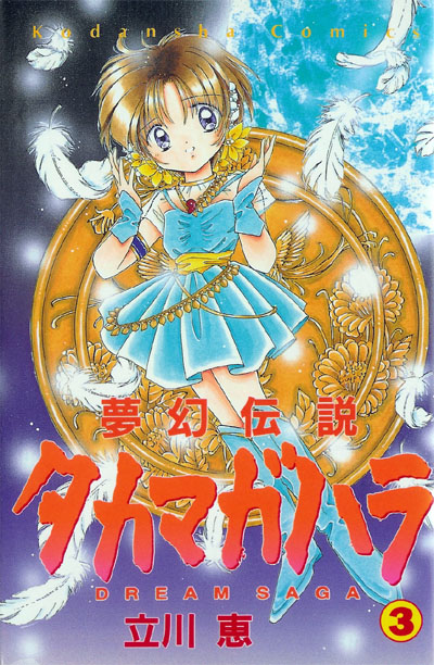 The following images are all the chapter covers as well as any extra images that were originally coloured. (When series run in magazines, they may get colour pages; when those chapters are collected into a volume, they’re usually printed in black and white.) As stated above, for colour versions of some of these, look under Colour Art and visit Megumi Tachikawa’s website.