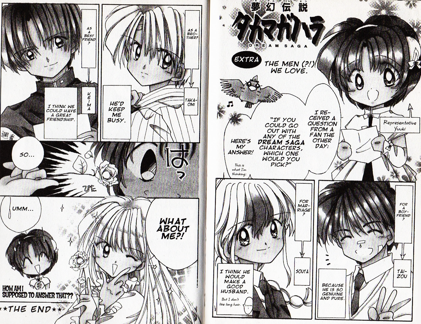 Be sure to check out the last image, the bonus pages of the last volume! My answer? I’m the fondest of Souta, who is my favourite character in Dream Saga, but there’s something about Keima that is very, very alluring… (And considering how often she mentions him in side remarks, I think Megumi Tachikawa thinks so too.)