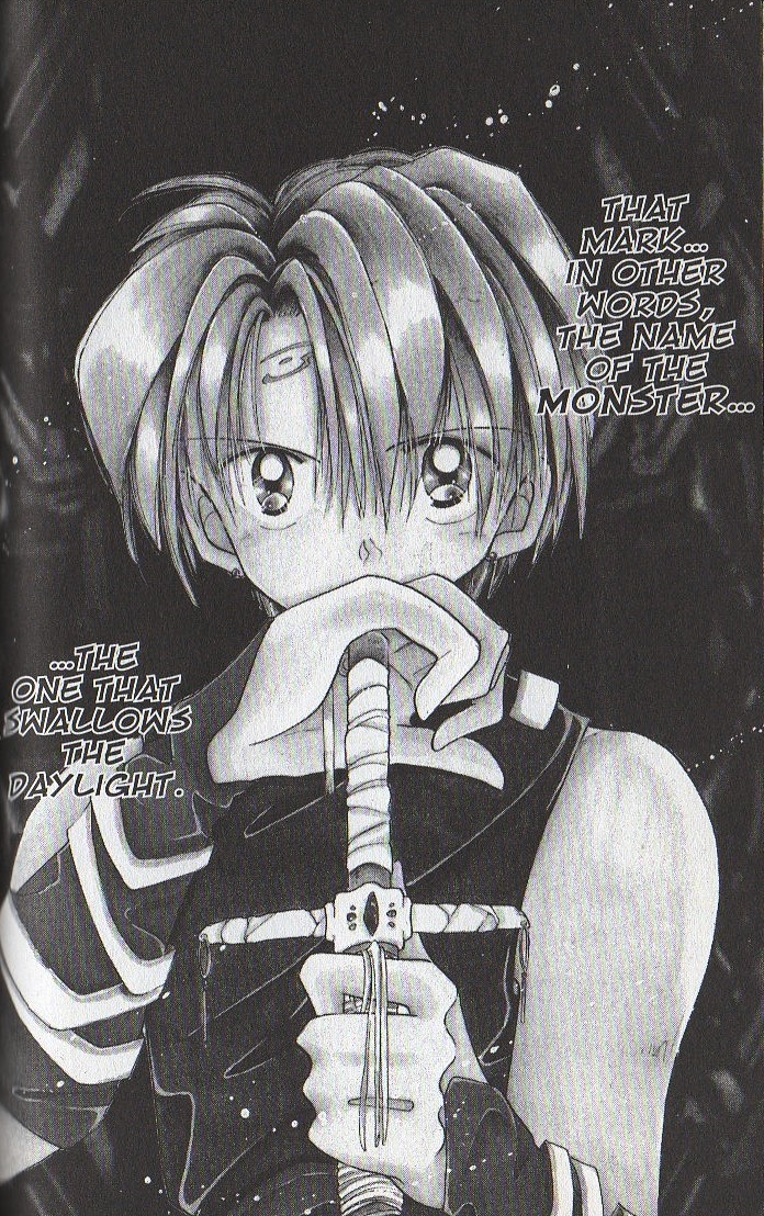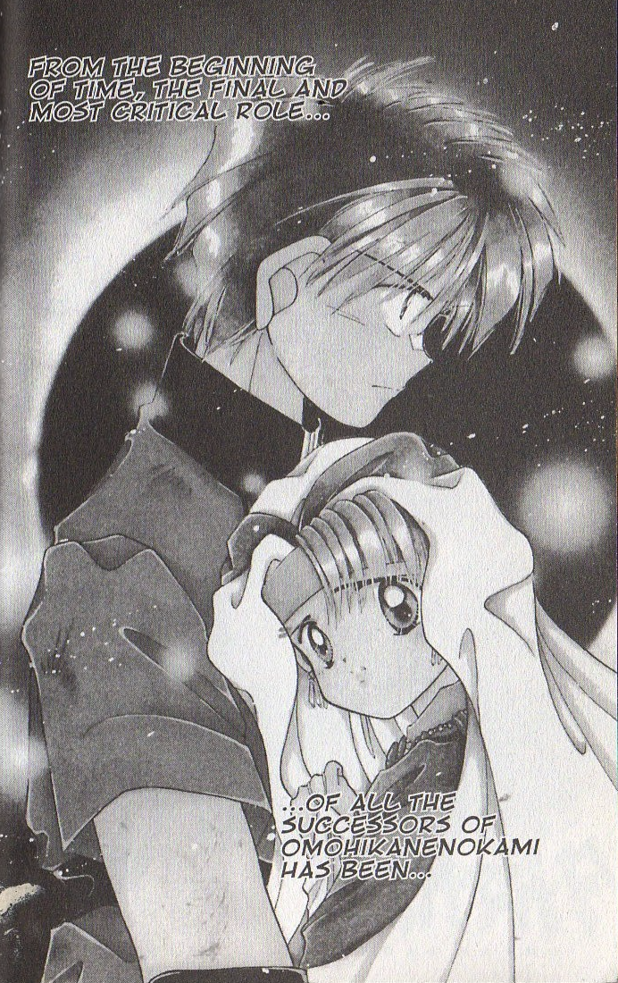 Some notes about the English version in comparison with the German version, which I’m most familiar with: Tokyopop makes weird translation choices in how it doesn’t handle Japanese terms consistently, especially those related to mythology. It leaves many Japanese terms untranslated with no translation notes or additional dialogue text to clarify what they mean (for example, the Amatsukami — gods — who Yuuki must find, or the Ama-no-iwato, the heavenly rock cave). On the other hand, it doesn’t refer to the Magatama as such, but simply calls it a “magic stone”.