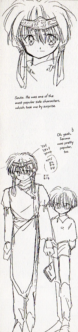 In the last volume, Megumi Tachikawa included concept sketches of the main characters along with commentary. They’re worth a look, especially due to the height comparisons!