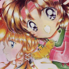 Part of the colour illustrations collected here are presumably scans of the Japanese volumes’ dust jackets or from the chapters’ release in the Nakayoshi magazine, as several of them are colour images within the manga. These scans are from different sites, and I have been preserving most of them since 2003. I am uploading them here as they seem to have been lost to the internet.