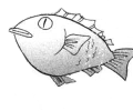 These unnamed fish are used as a means of transport by those who poach and contaminate the sea under Tsukuyomi’s orders. He himself keeps several of them as pets and calls them by individual names; evidently, they can be tamed, as they allow humans to mount and to pet them. They have large mouths and jagged teeth. (One of the poachers calls their fish “Zegou”, but that might just be another individual name.)